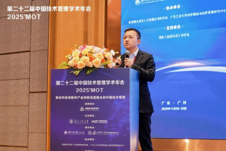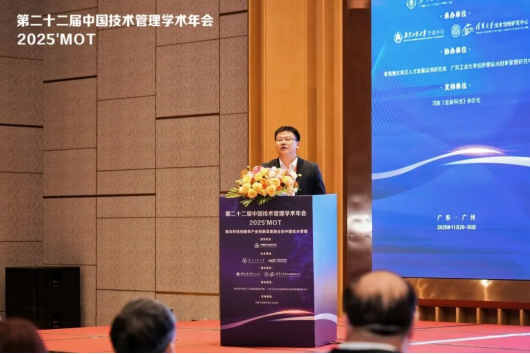 2025年11月29—30日,第二十二届中国技术管理学术年会(2025'MOT)在广州成功举办。本届年会以“面向科技创新和产业创新深度融合的中国技术管理”为主题,在中国技术经济学会指导下,由广东工业大学、中国技术经济学会技术管理专业委员会主办,广东工业大学管理学院、清华大学技术创新研究中心承办,粤港澳大湾区人才发展战略研究院、广东工业大学创新理论与创新管理研究中心协办。
